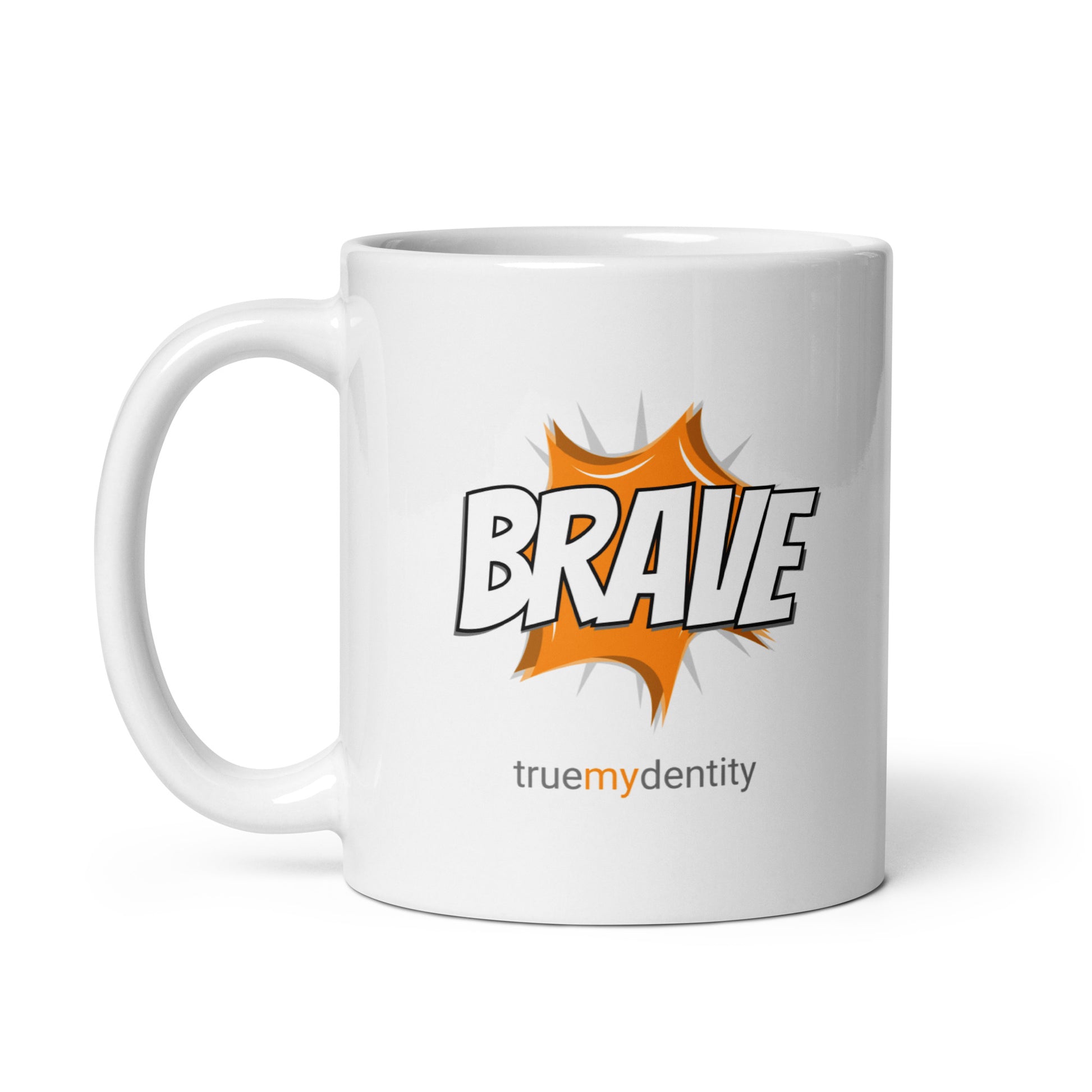 BRAVE WHITE COFFEE MUG ACTION DESIGN: