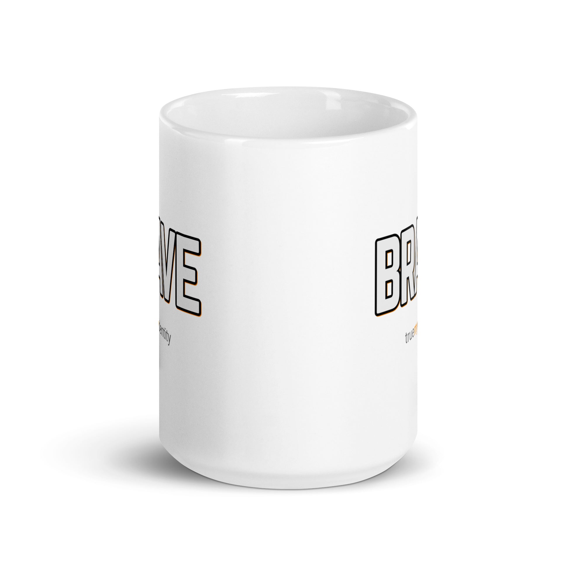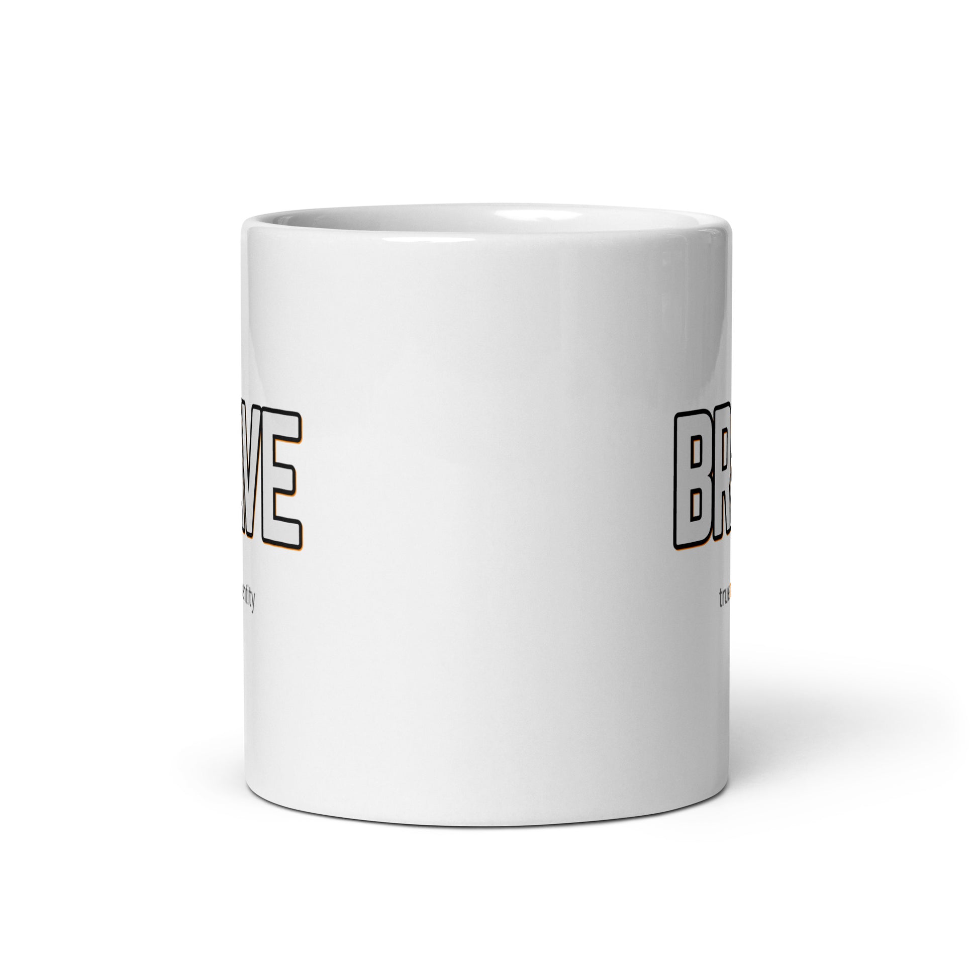 BRAVE White Coffee Mug Bold 11 oz or 15 oz