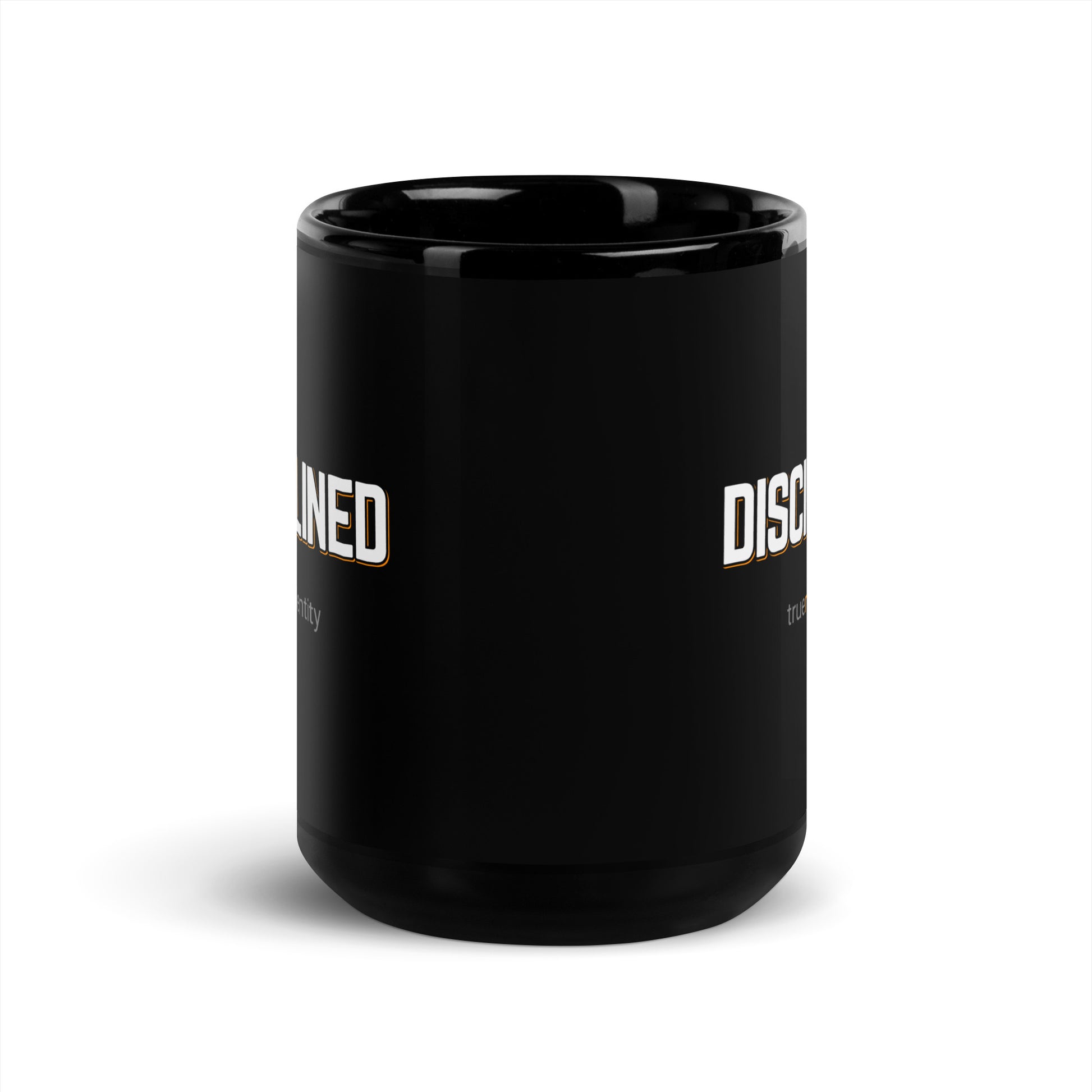 DISCIPLINED BLACK COFFEE MUG BOLD DESIGN:
