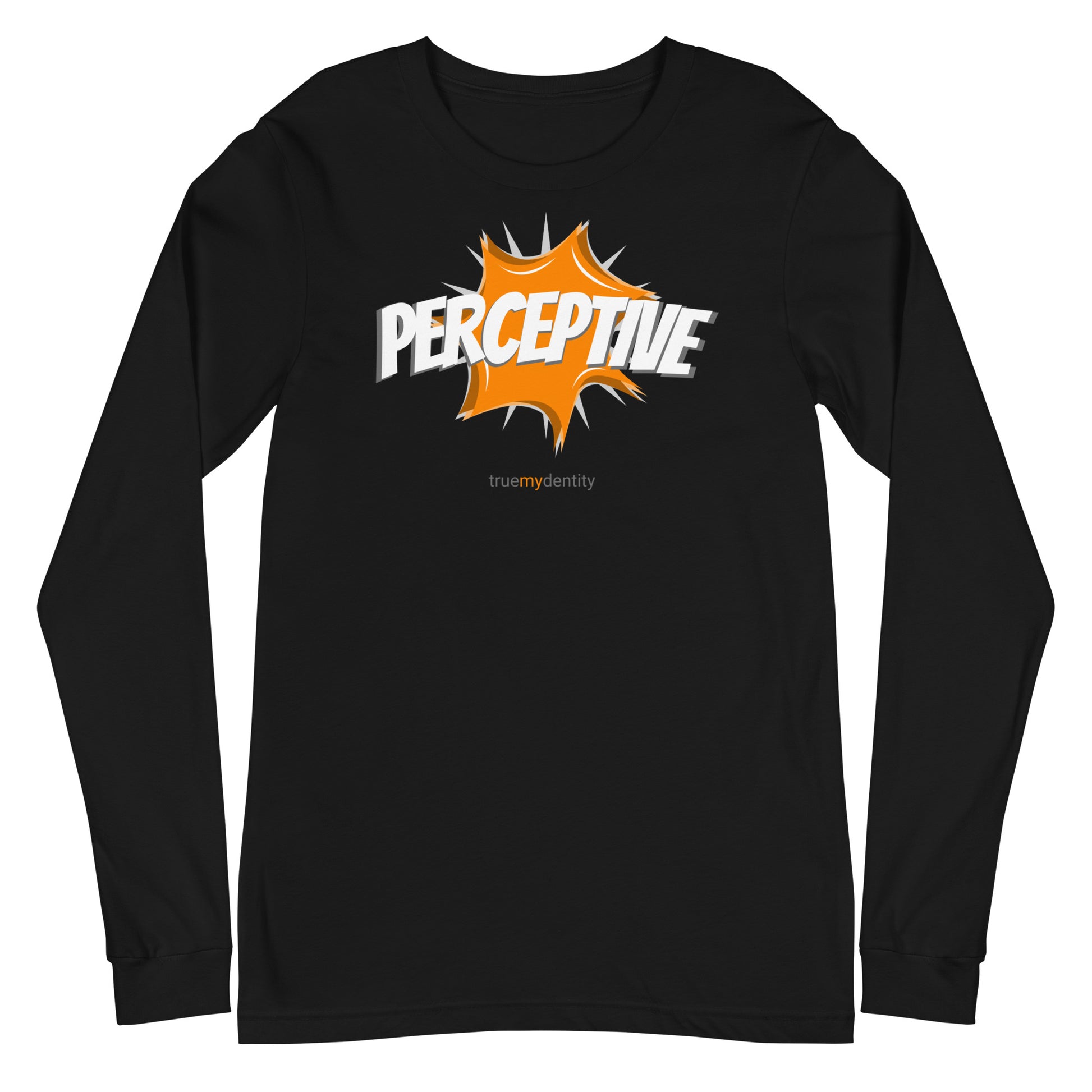 We print the perceptive action design on the front of Bella Canvas unisex long sleeve shirts. A comfortable, classic, 100% cotton feel that can be styled with athleisure or jeans for a casual look. Or worn with a blazer for a more classy, business casual look while remaining comfortable. A classic crew neck, versatile long sleeve shirt fit for any closet!