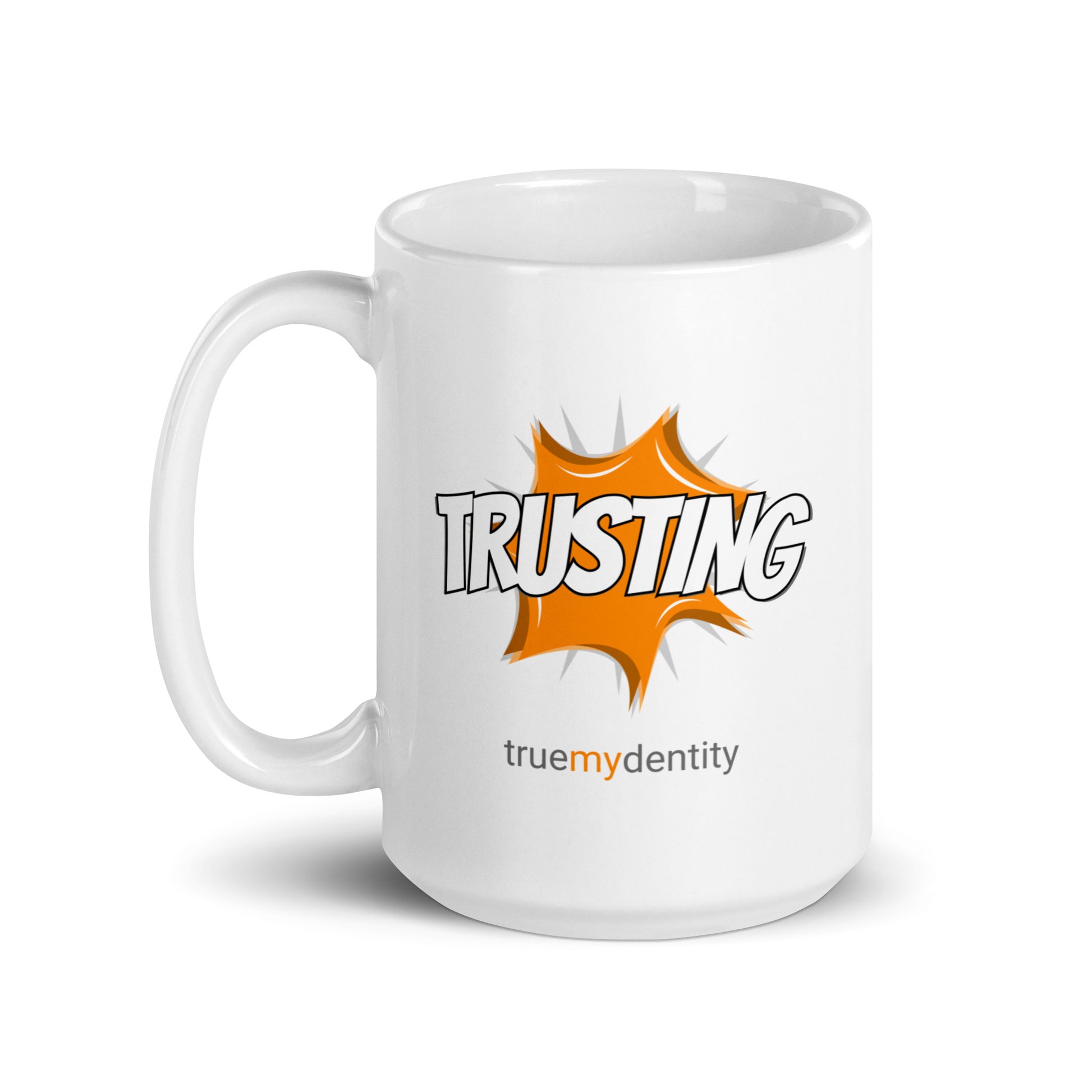 TRUSTING WHITE COFFEE MUG ACTION DESIGN:
